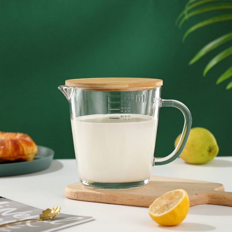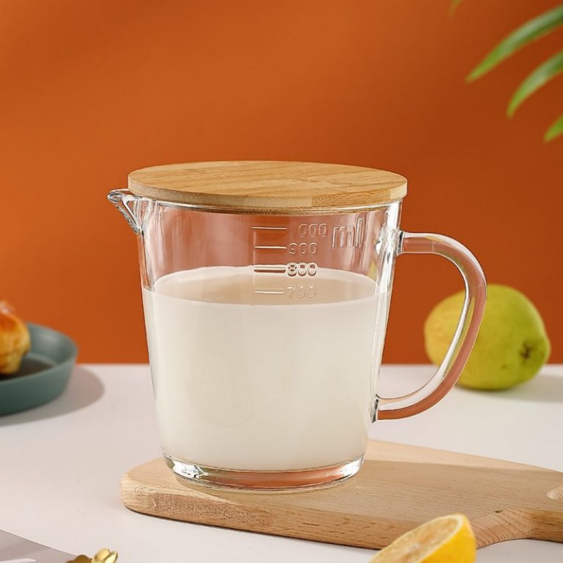 1000ml Heat‑Resistant Borosilicate Measuring Jug with Bamboo Lid – Wholesale Kitchen Measuring Cup