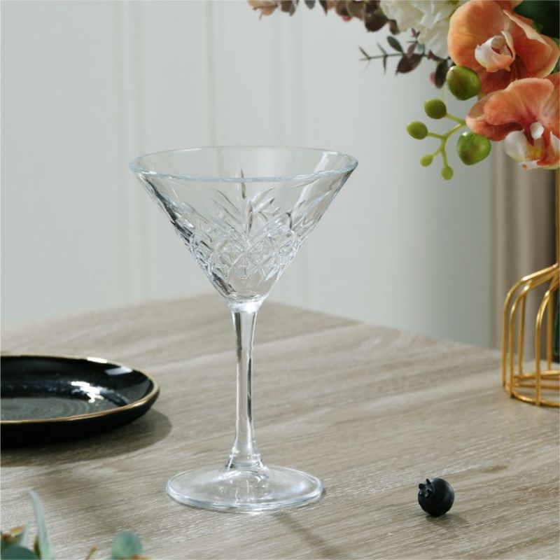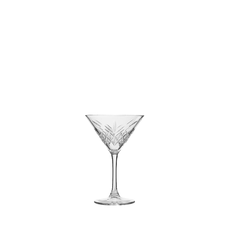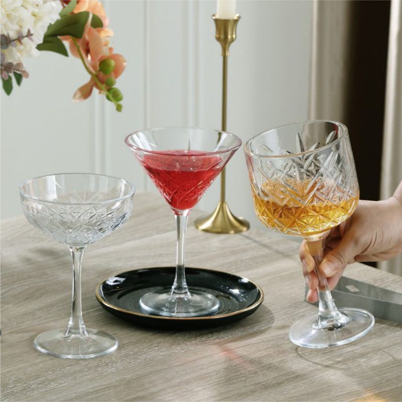 This 230ml vintage martini glass features a beautifully carved bowl with geometric and leaf‑style cut patterns that create a sparkling, light‑reflecting effect. The wide 117mm rim enhances aroma release, making it ideal for classic martinis, margaritas, cosmopolitans, and modern craft cocktails. Made from lead‑free crystal, the glass ensures safety, clarity, and durability. The tall 173mm stem provides an elegant profile while keeping hands away from the bowl to maintain drink temperature. Each set of 4 is packaged in export‑safe cartons, with optional custom gift boxes for retail and private‑label programs.