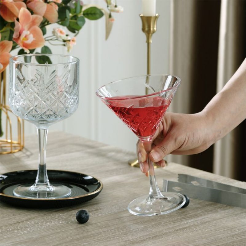 The open conical bowl allows cocktails to bloom beautifully, improving aroma and visual appeal for classic and modern mixology menus.