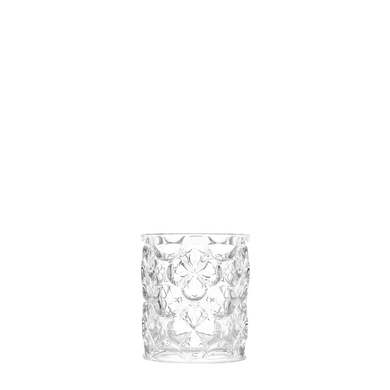This 340ml glass tumbler combines decorative craftsmanship with commercial durability. The embossed geometric pattern adds a premium, vintage‑inspired look while improving hand feel and stability. The thick 78mm base provides excellent balance, making it suitable for whiskey, spirits, mixed drinks, and general beverage service. Manufactured with high‑quality soda lime glass, the tumbler offers clarity, strength, and long‑term reliability for high‑traffic hospitality environments. Automated production lines and strict quality control ensure consistent quality for large‑volume orders. The model supports OEM/ODM customization, including logo printing, color coating, frosting, and custom packaging.