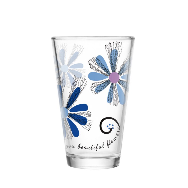 6-Piece Floral Printed Soda Lime Glass Tumbler Set – 301–500ml Decorative Drinkware for Restaurants & Events