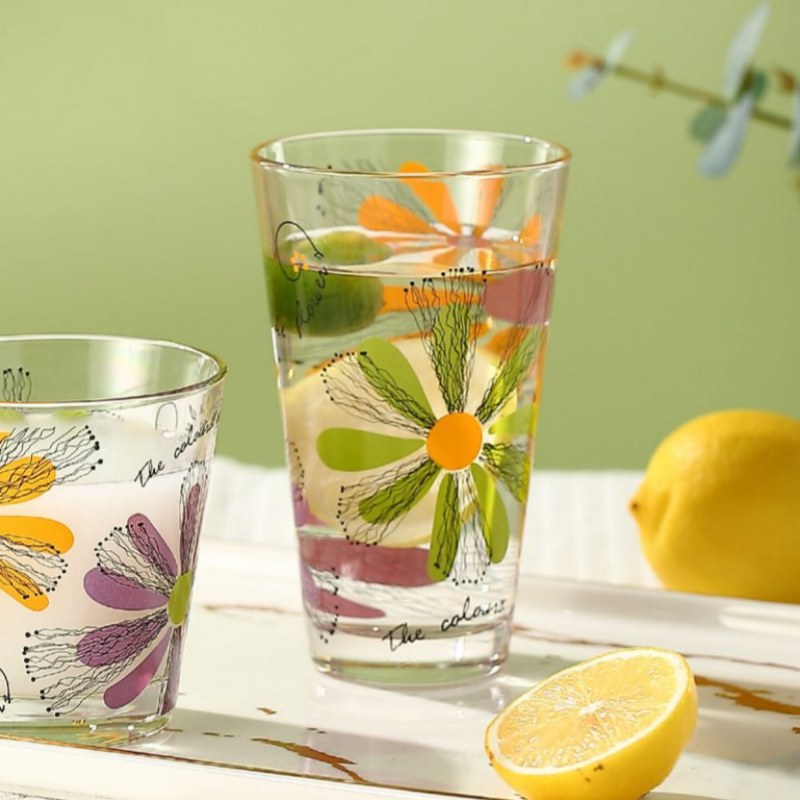 Add a splash of color to your tableware with this floral printed glass tumbler set. Featuring whimsical flower illustrations and uplifting text, each piece brings charm and personality to beverage service. Perfect for boutique cafés, lifestyle hotels, or event planners seeking aesthetic glassware, these tumblers combine visual appeal with functional durability. Made from soda lime glass and sized for versatile use, they’re a standout choice for brands that value both form and function.