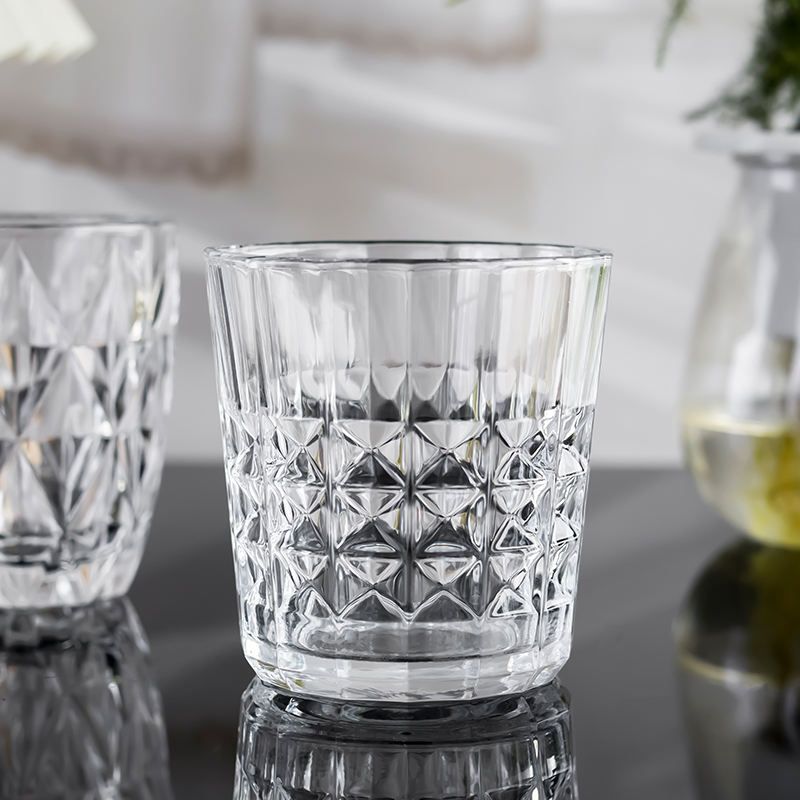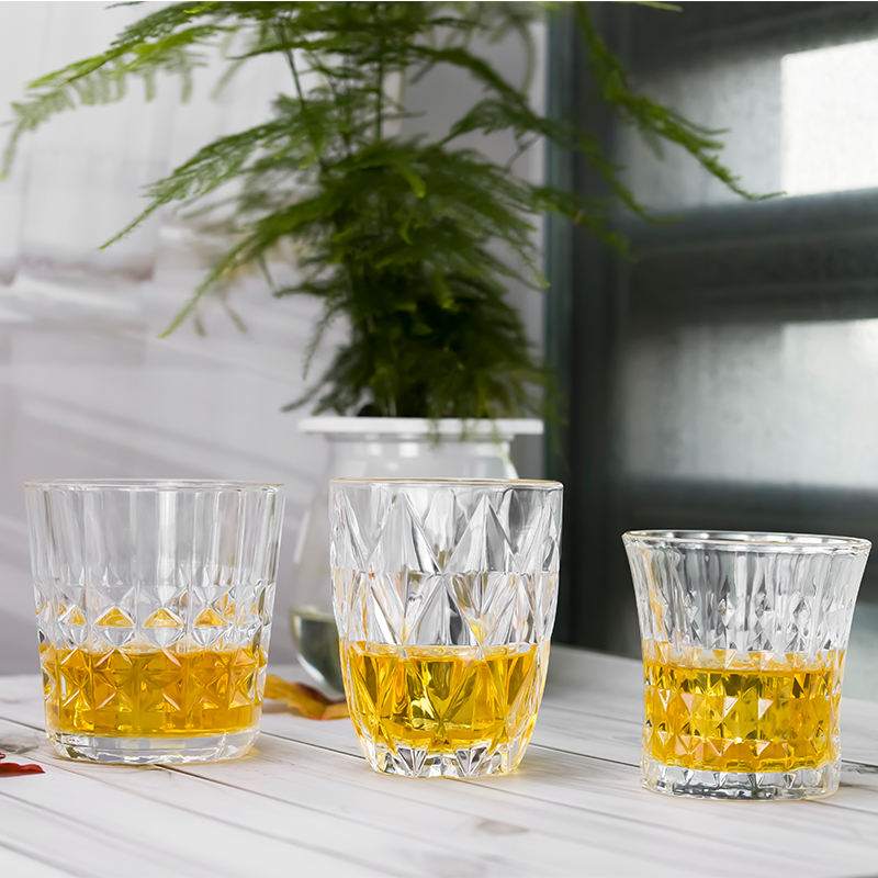 This 370ml whiskey glass tumbler is crafted from high-quality soda lime glass, featuring a diamond-patterned lower half for enhanced grip and visual appeal. Its machine-pressed construction ensures uniform thickness and durability, making it ideal for bar, restaurant, and hotel use. The transparent body showcases the drink beautifully, while the 4-piece set format supports OEM customization including logo printing and packaging. Suitable for bulk orders, this tumbler is a reliable choice for B2B buyers seeking stylish and functional glassware.