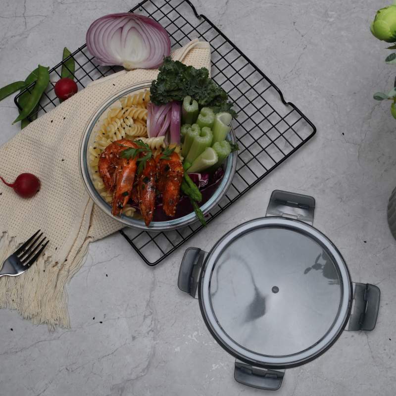 Xinghuo Glass's XHGPK930 borosilicate glass food container has a 930ml capacity and features a BPA-free, airtight locking lid with four secure clips to create a leak-proof seal. It is heat-resistant, wear-resistant, durable, and highly transparent. Microwave safe and dishwasher safe, it is ideal for food preparation, storage, kitchen organization, and catering services. Designed specifically for wholesalers, retailers, and kitchenware brands seeking durable, highly transparent glassware.