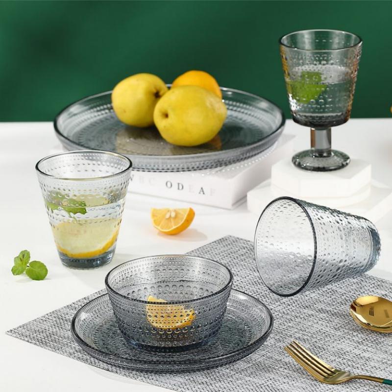 Made from premium clear glass with a refined polka dot texture, offering excellent transparency and visual appeal for modern table settings.