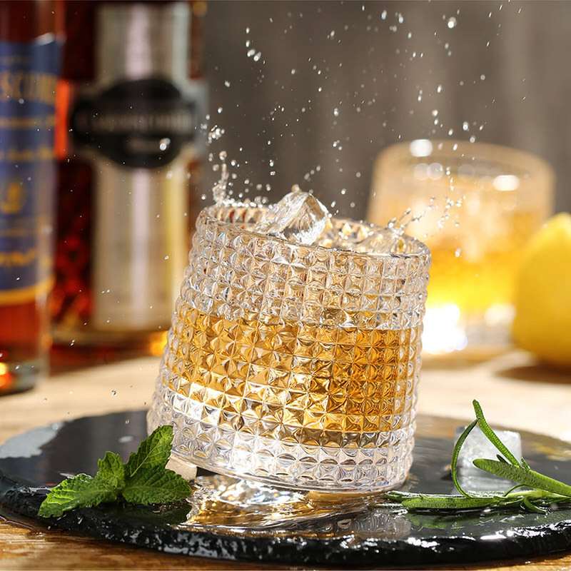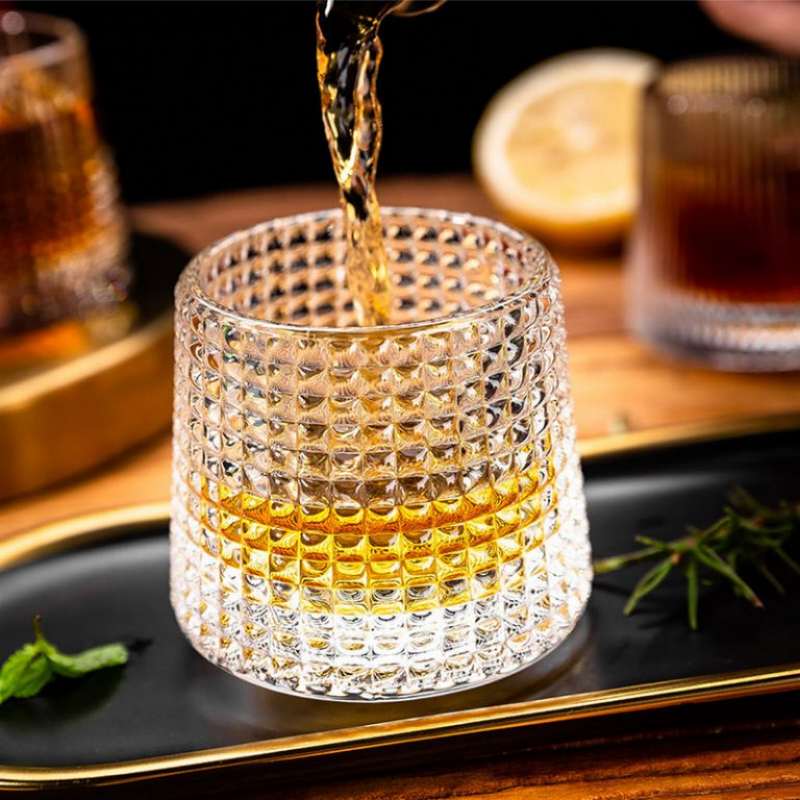 Every sip deserves a vessel that speaks of quiet sophistication. This clear textured whiskey glass, with its flat base and tactile grid design, catches the light like ripples on water. Whether you're winding down with a smoky single malt or hosting a candlelit gathering, its vintage charm and modern clarity elevate the moment. Designed for those who savor both style and substance.