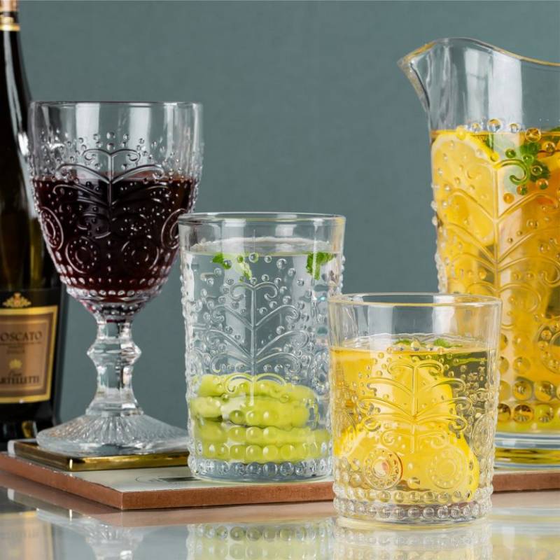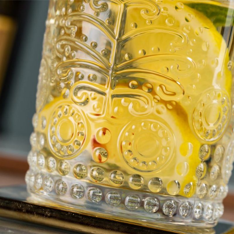 Where vintage charm meets everyday ritual. This embossed glass tumbler evokes the grace of antique tableware with its intricate leaf pattern and crystal-clear finish. Whether used for morning juice or evening cocktails, its tactile texture and balanced form elevate the drinking experience. Perfect for lifestyle brands, boutique cafés, or homeware collections that celebrate craftsmanship and quiet beauty.