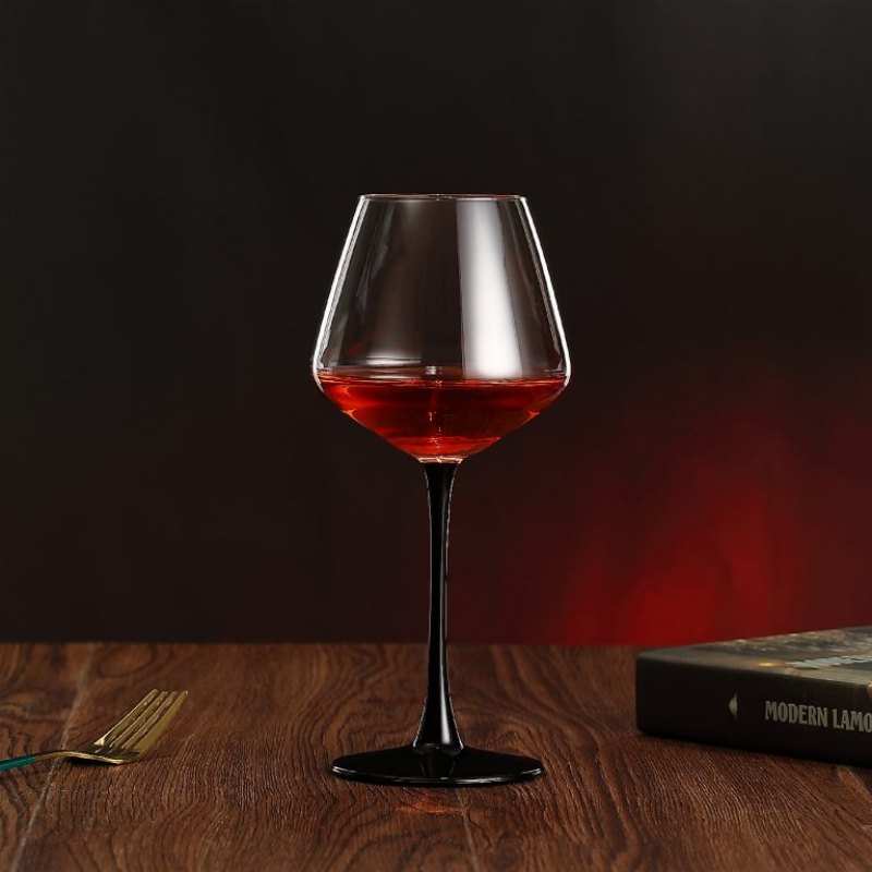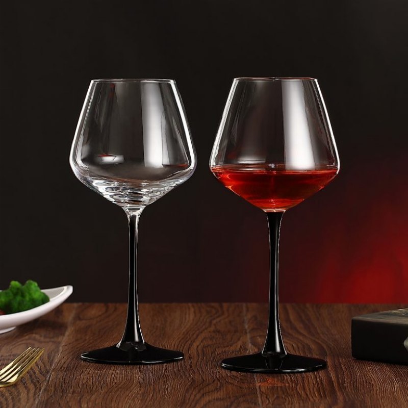 Elegant Processed Wine Goblets – Black Stem Soda Lime Glass Cups for Hospitality & OEM Branding