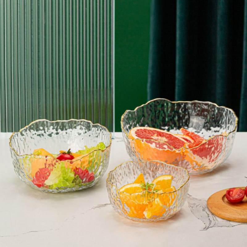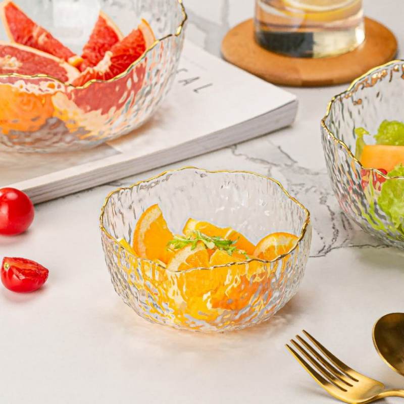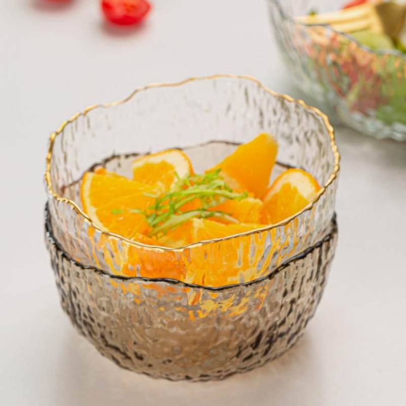 Bring a touch of elegance to every meal with this luxury textured glass bowl accented with a golden rim. The shimmering surface reflects light beautifully, while the wavy edge adds a sense of artistry to your dining table. Whether used to serve fresh fruit at brunch, display colorful salads at dinner, or simply as a decorative centerpiece, this bowl transforms ordinary moments into memorable experiences.