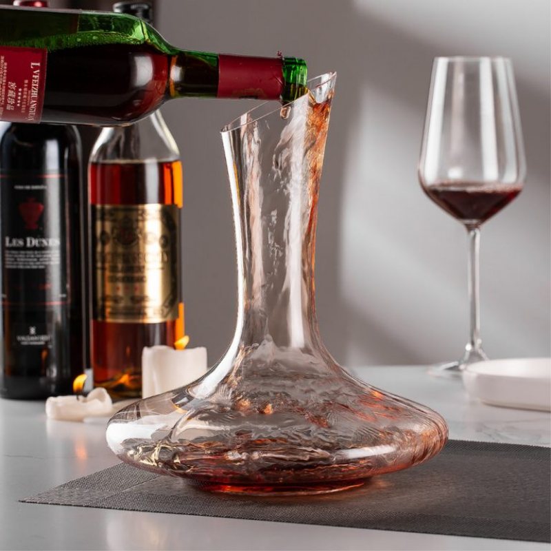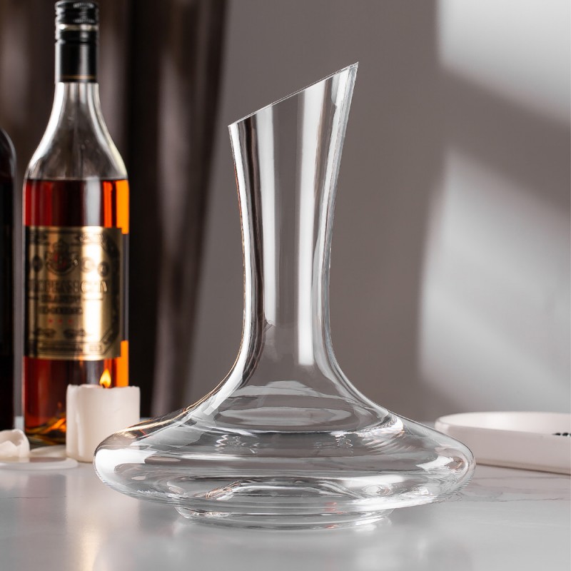 Unveil the full character of your wine with this 1500ml crystal wine decanter, where form meets function. Expertly crafted from premium lead-free crystal, its graceful silhouette and tilted spout create a dramatic yet practical centerpiece for any table. The wide base promotes aeration, unlocking rich aromas and smooth textures in every pour. Whether you're curating a luxury barware collection or sourcing for upscale dining venues, this decanter offers OEM flexibility and timeless elegance — a perfect blend of performance and presentation.