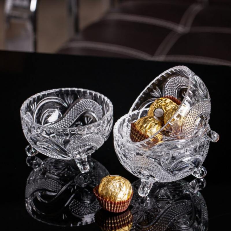 Pressed Glass Candy Dish with Pedestal Feet – Wholesale Decorative Serving Bowl for Buffet & Hospitality