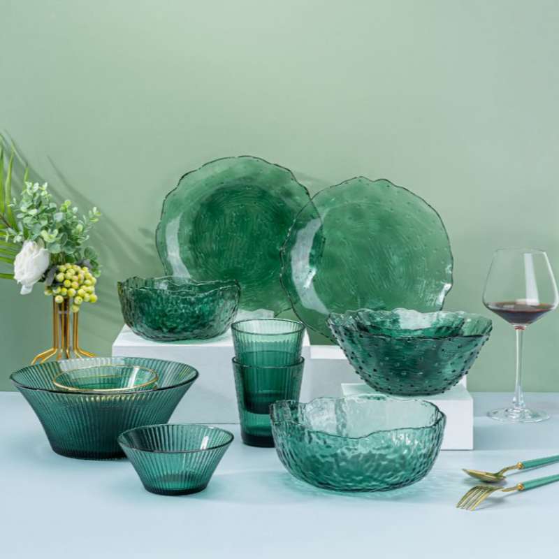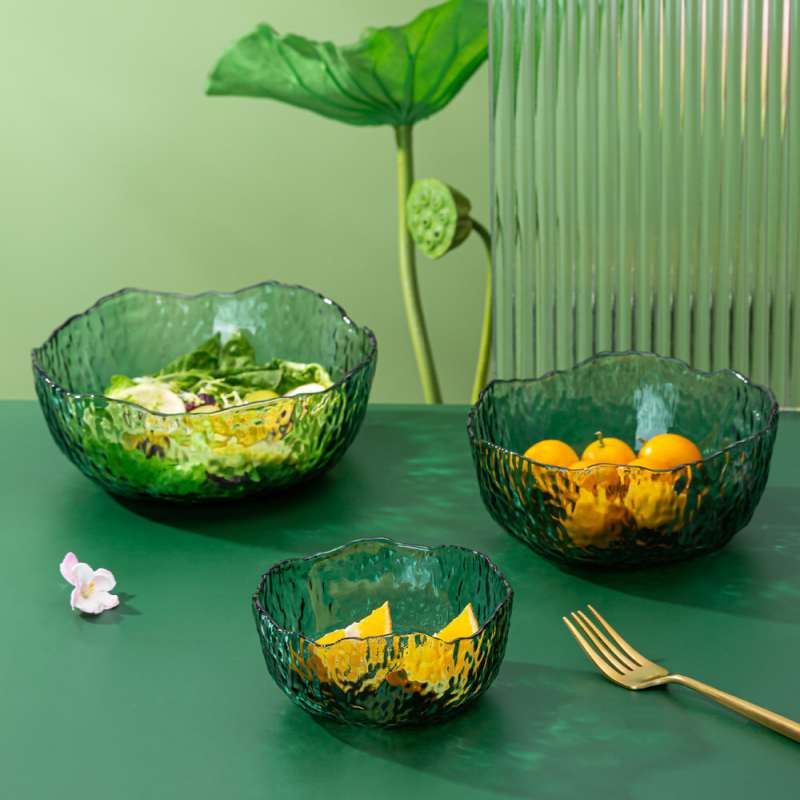 Translucent Green Glass Serving Bowl | Bulk Glass Tableware Manufacturer & Exporter