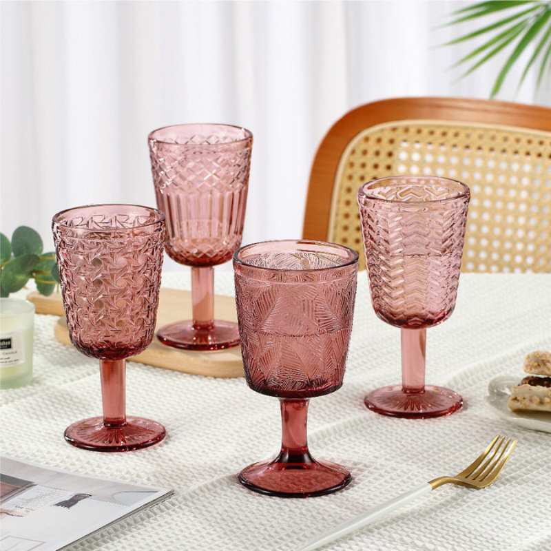 Elevate your tableware collection with this Vintage Pink Textured Glass Goblet, designed for restaurants, hotels, and event planners seeking both durability and elegance. Crafted from high-quality colored glass, the goblet features a diamond-cut and ribbed surface that enhances grip while adding a sophisticated aesthetic. Its wide bowl and slender stem make it ideal for serving wine, cocktails, or specialty beverages at weddings, banquets, and upscale dining venues. For wholesale buyers, this goblet offers consistent quality, bulk availability, and OEM customization options, ensuring seamless integration into diverse hospitality settings. Whether used as functional stemware or decorative table accents, it delivers both practicality and visual impact, helping businesses create memorable guest experiences.