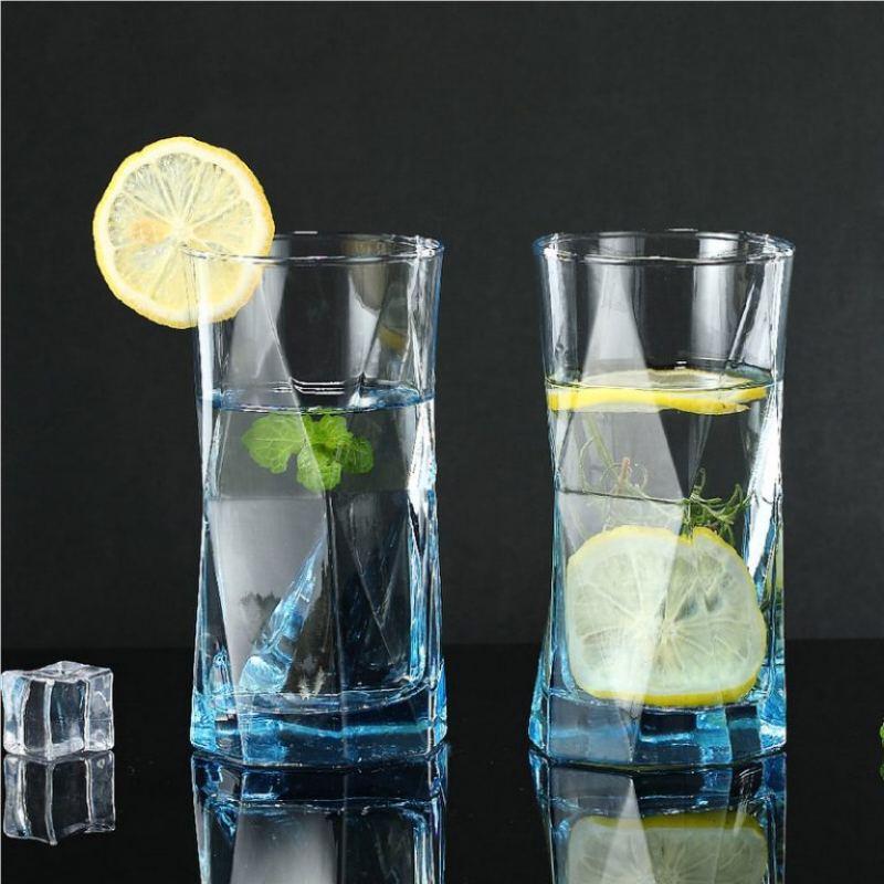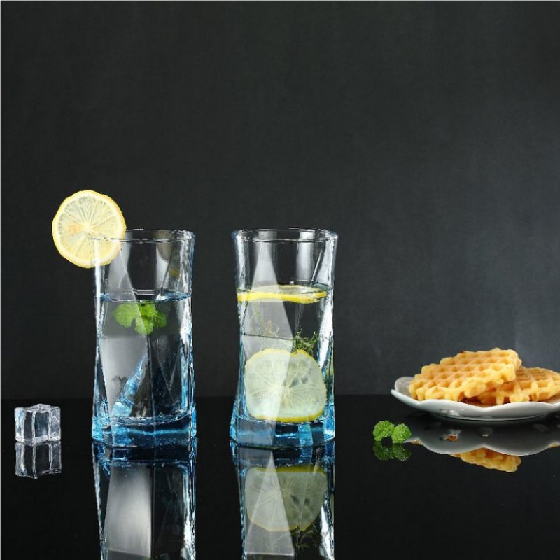 A faceted glass tumbler is a type of drinkware with multiple angled surfaces that improve grip and create a reflective geometric appearance. The XHJS5180B model uses a solid‑color soda‑lime glass design suitable for restaurants, hotels, and bars.