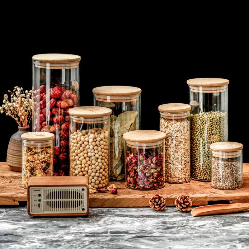 Wholesale Airtight Glass Storage Jar with Wooden Lid QianLi Glassware – Clear Borosilicate Canister for Dry Goods, Coffee, Tea, Spices