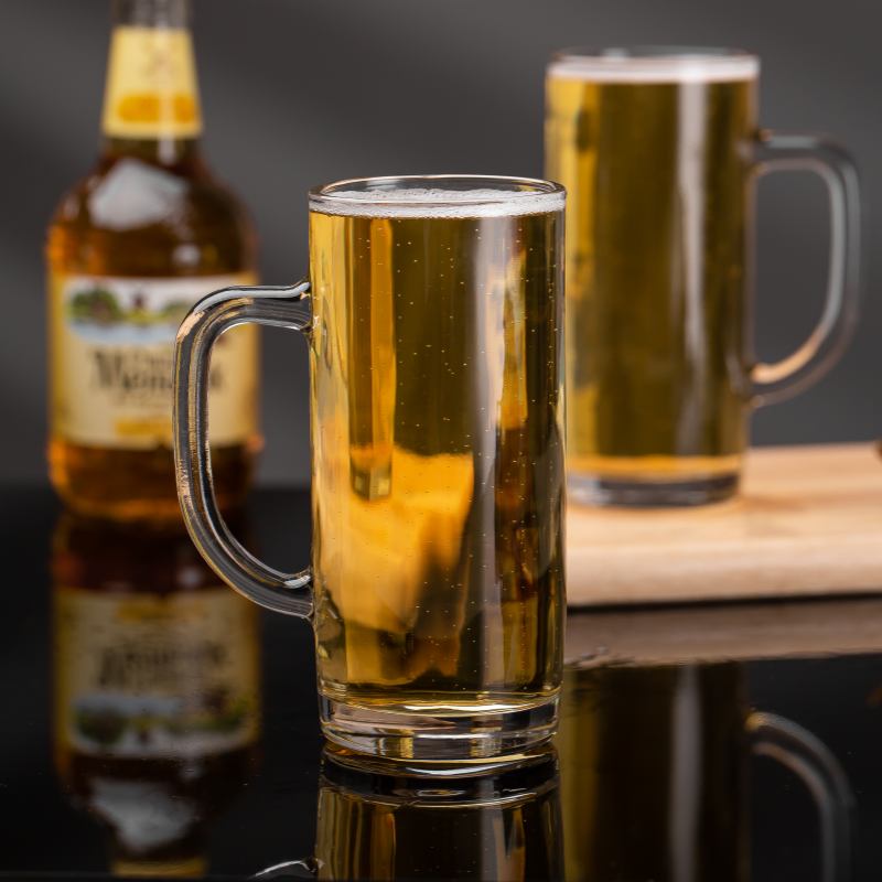 This classic clear beer glass is crafted from high-quality soda-lime glass, featuring a thick bottom for durability and sturdiness, making it suitable for frequent use. Its crystal-clear body and comfortable handle ensure a pleasant drinking experience while enhancing the overall quality. We offer bulk orders, OEM customization, and logo printing, and can provide customized packaging solutions. Whether you're using it for bars, restaurants, hotels, breweries, or gifting, this beer glass meets your needs for durability, branding, and large-scale supply, making it an ideal commercial glassware choice.