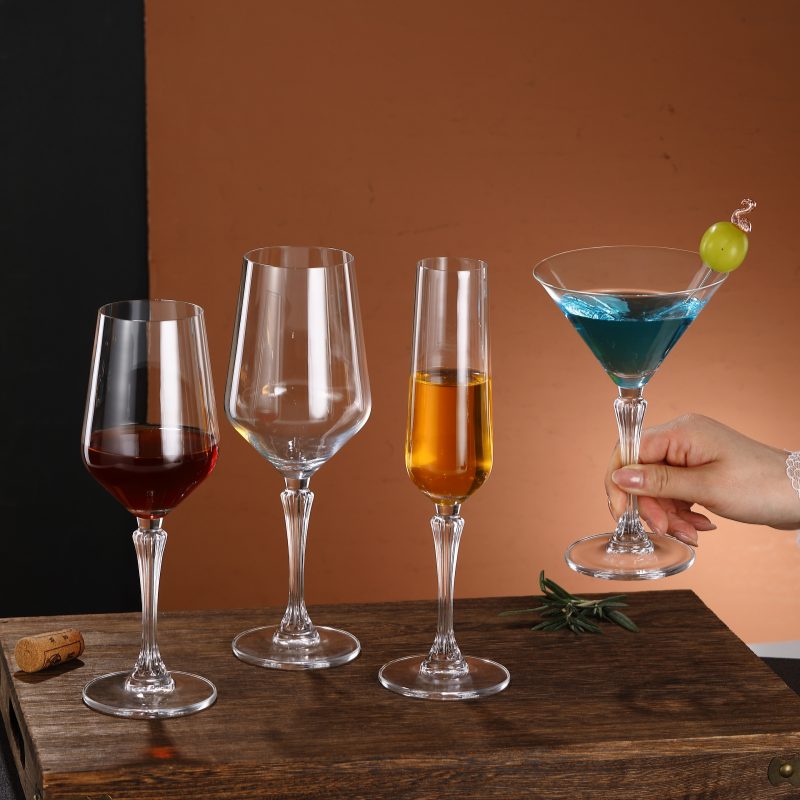 Crafted from premium crystal glass, this glass boasts exceptional clarity and luster, a slender stem, and a robust construction, making it suitable for commercial use. Packaged in 1×6×4 squares, it is ideal for wholesale and bulk purchases.