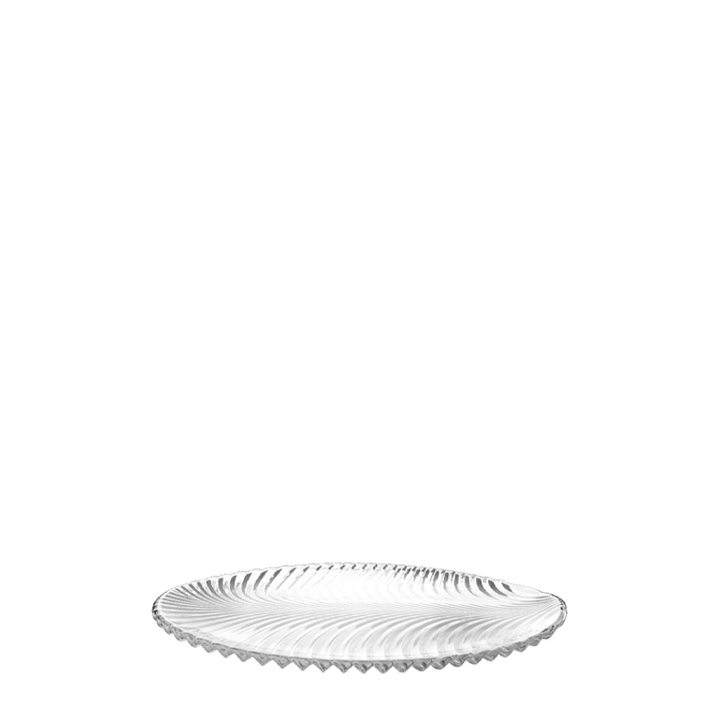 This crystal glass platter features a refined embossed design with a scalloped edge, offering both elegance and durability for commercial use. Ideal for serving desserts, appetizers, or centerpiece arrangements, its clear glass finish enhances presentation in upscale dining settings. Available in sets of 7 pieces and above, this platter is perfect for hotels, catering services, and bulk procurement. Dishwasher safe and stackable for efficient storage.