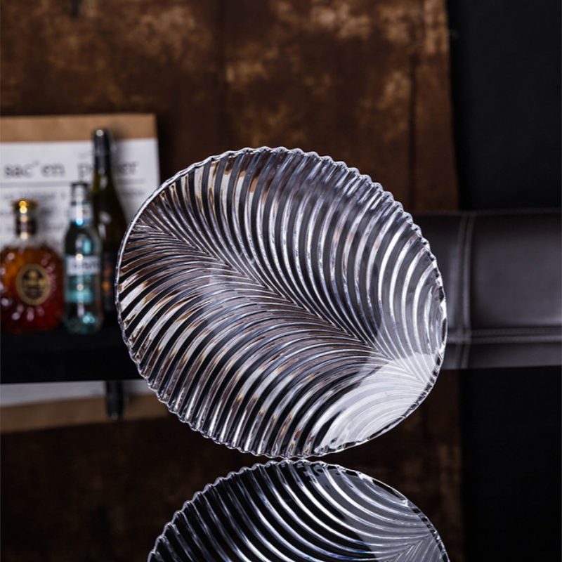 Elevate your tableware collection with our decorative crystal glass platter, where craftsmanship meets timeless charm. The swirling embossed pattern and scalloped rim evoke vintage elegance, making each plate a statement piece for formal dining or festive occasions. Whether you're curating a luxury hospitality experience or sourcing premium glassware for gifting, this 7-piece set blends artistry and function—ready for branding, customization, and bulk orders.