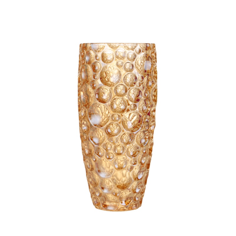 Like rising bubbles frozen in time, the XHDSHP2032HB glass vase captures movement and clarity in its textured soda lime glass body. The plated surface adds a subtle shimmer, while the cylindrical silhouette and bubble pattern evoke a sense of modern luxury. Whether styled as a centerpiece vase or placed in a hotel lobby, it brings depth and artistry to any space. Designed for OEM clients and wholesale distribution, this decorative glass vase blends craftsmanship with commercial versatility.