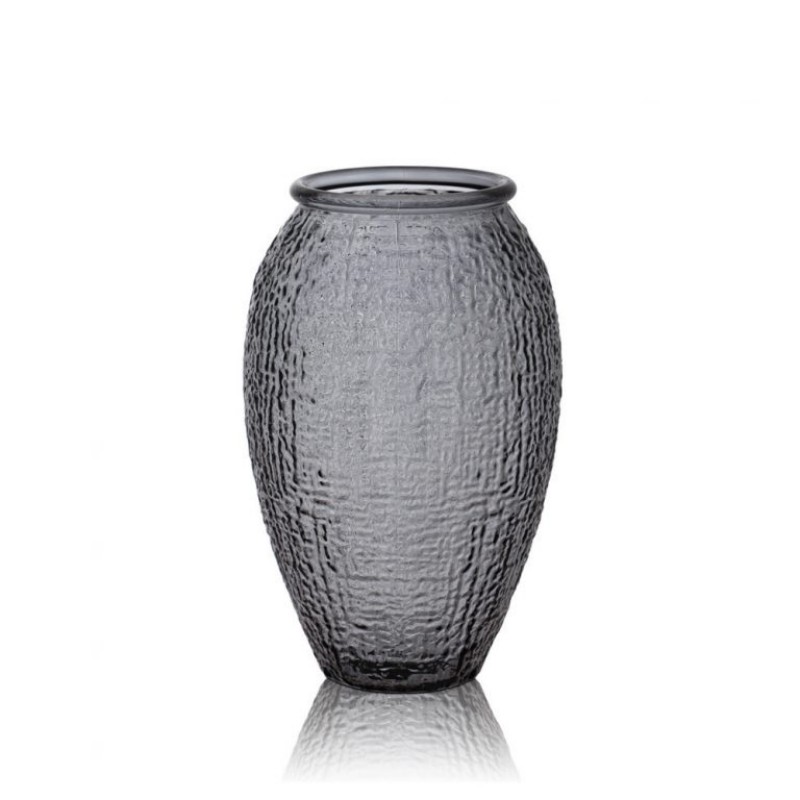 The XHHP65HP Amber Textured Glass Vase features a 240mm height, 85mm opening, and a plated decorative finish. Its embossed grid texture enhances visual depth, making it suitable for home décor collections, hotel lobbies, floral shops, and retail displays. The 1×6 packaging format ensures safe transport and efficient wholesale distribution.
